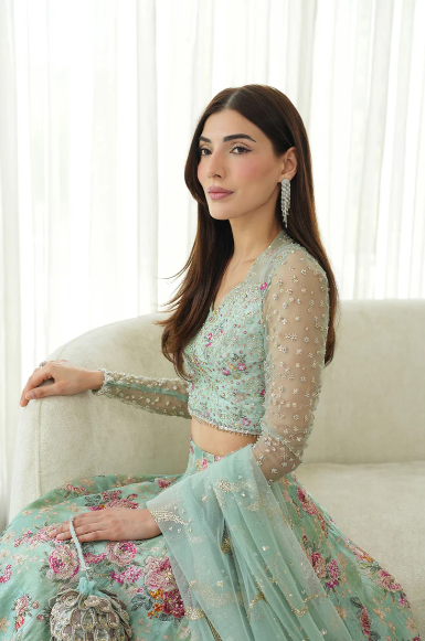 • Embellished and Printed Silk Lehnga
